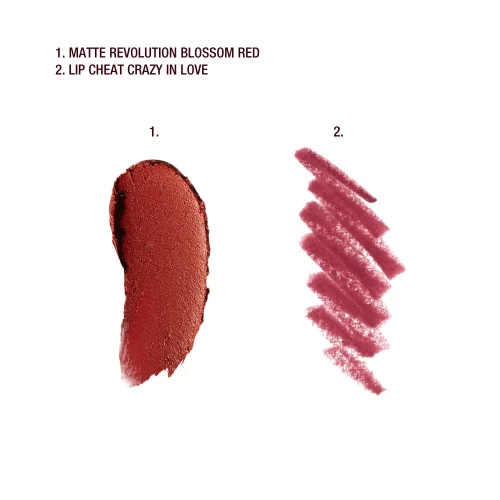 - Lip Cheat lip liner in a shade of your choice: My backstage beauty secret for fuller, wider looking lips! The dreamy, smooth, waterproof formula glides onto your lips and lasts for up to 6 hours!* Choose one shade from the full collection to complete your lip kit! To perfectly complement Blossom Red, choose Lip Cheat in Hot Gossip, darlings!