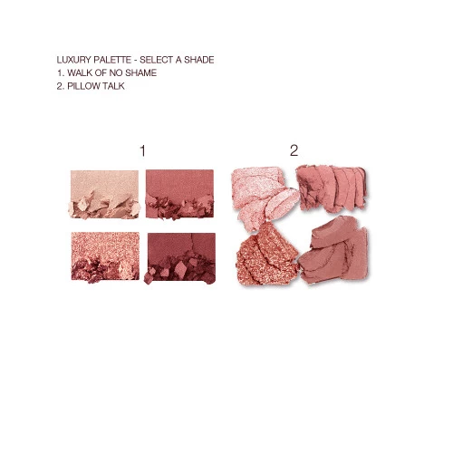 - Luxury Palette in a shade of your choice: Choose your Luxury Palette, darling! These eyeshadow palettes each include 4 colour-coded shades to prime, enhance, smoke and POP for a mesmerising eye look for any occasion. Choose a palette in the shade of your choice; will you choose the globally-loved pink-toned Pillow Talk, dialled up Pillow Talk dreams, smokey berry-toned Walk of No Shame, the gorgeous green gold The Rebel, beautiful bronze The Bella Sofia, or another shade, darling?