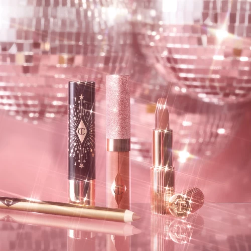 This LIMITED-EDITION kit includes a full-size Hyaluronic Happikiss hydrating lipstick balm in my ICONIC nude-pink shade, travel-size PILLOW TALK MEDIUM Lip Cheat and Matte Revolution for a deeper berry-pink kiss of colour, plus a travel-size tube of my sparkling diamond Jewel Lips gloss!