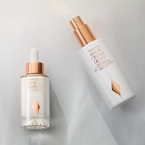 SUPERCHARGED skincare INNOVATION, Magic Cream Light, an ultra-hydrating lightweight moisturiser with SPF20, Magic Cream Light and my GROUND-BREAKING, HIGH-PERFORMANCE face serum for the appearance of BRIGHTER, FIRMER, YOUNGER looking skin, Charlotte’s Magic Serum Crystal Elixir!