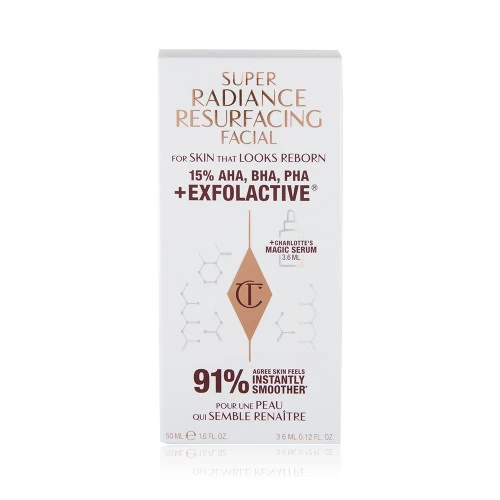 Tilbury Tip: If you have not used acids in your magic skincare routine before, I recommend leaving Super Radiance Resurfacing Facial™ on your skin for just 5 minutes for your first application, increasing the time by 5 minutes week-by-week until you reach the recommended full 20 minutes! This is to help your skin get used to the ingredients; Super Radiance Resurfacing Facial™ is suitable for all skin types and has been clinically tested to not cause any irritation.